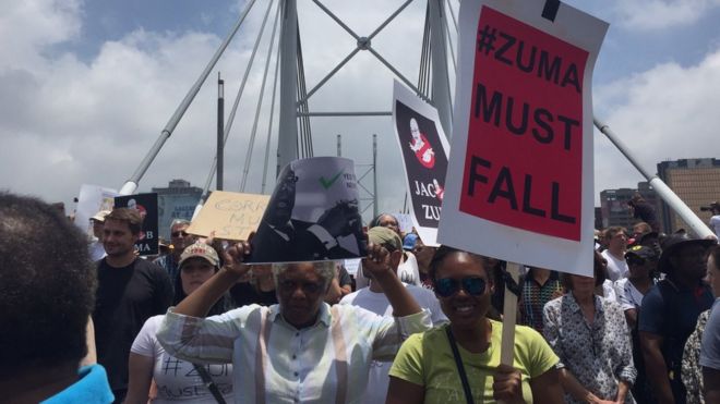 South Africans are protesting in the street demanding President Jacob Zuma be removed from office following Zuma sack of two Finance Minister last week.