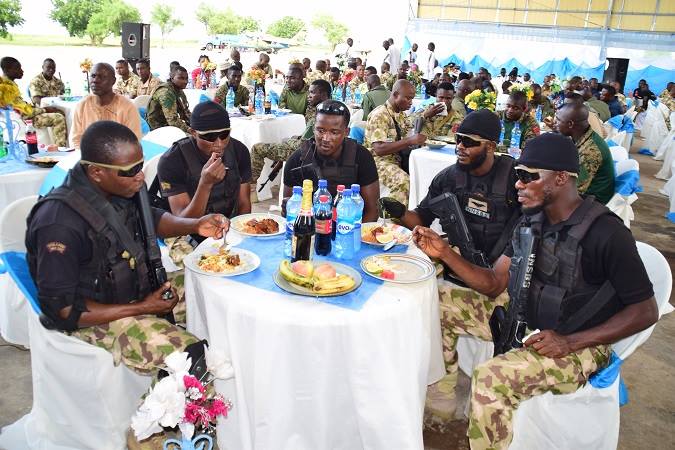 Air Force Troops fighting Boko Haram in the North East pictured celebrating Sallah in Maiduguri