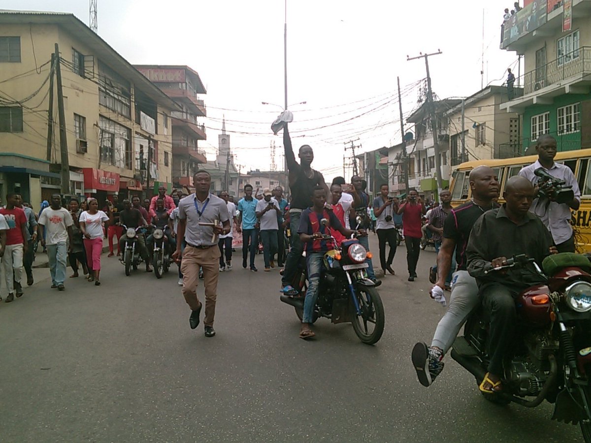 Nigerian Labour Congress Kick start protest in Lagos, in the lead, is Charlyboy on a motorbike
