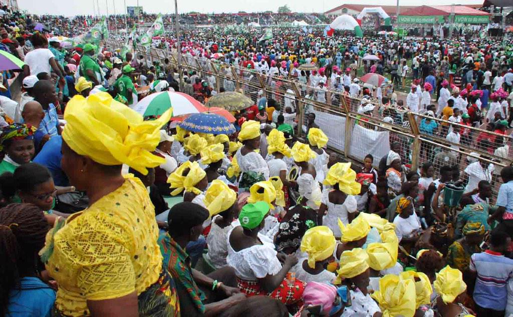 Jonathan arrives Ogbe stadium Benin city, Edo state for his presidential campaign,massive crowd in attendance more pictures