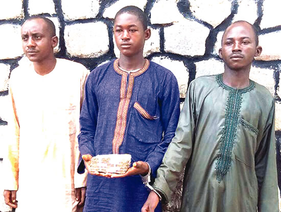 The names of the suspects were given as Haruna Adamu, 25; Shuaibu Adamu, 18; and Abubakar Saidu, 30.