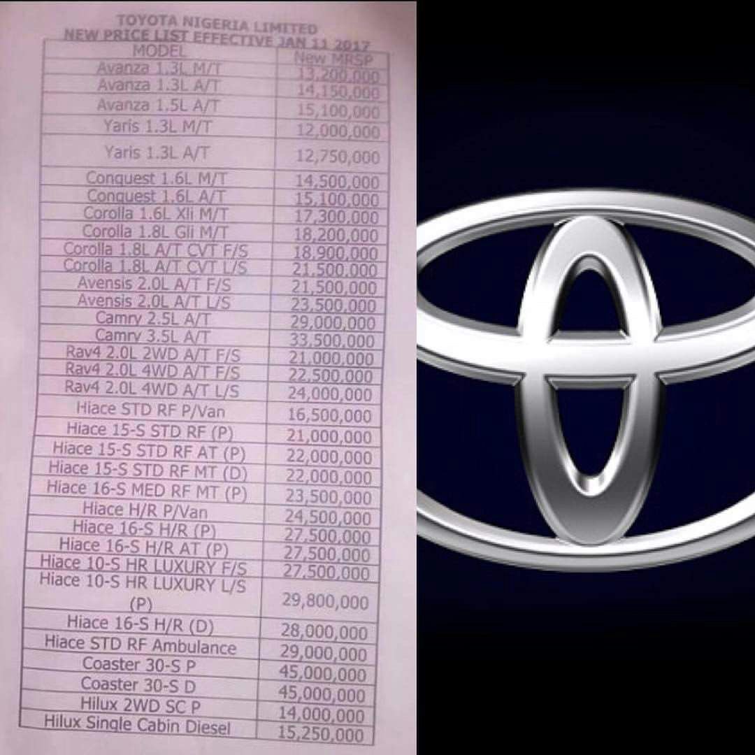Meaning a normal salary earner in Nigeria can no longer drive a Toyota car.