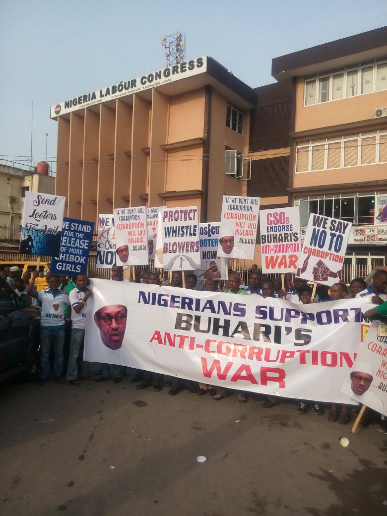 Nigerians are currently out on the street of Lagos holding rally in support of president Buhari anti-corruption war which seems to threaten some of the elites