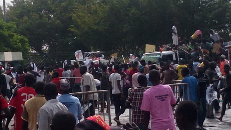 The Indigene of Borno state mostly the internally displaced persons today flooded the National Assembly premises protesting the suspension of Senator Ndume and demanding his immediate recall.